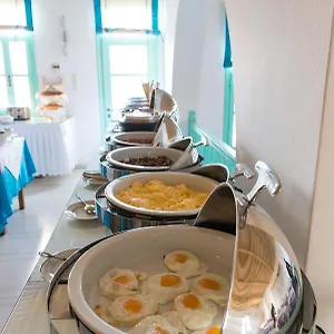 È situato a soli 10 minuti a piedi dal centro di Mykonos Town, vicino alla Spiaggia di Megali Ammos.